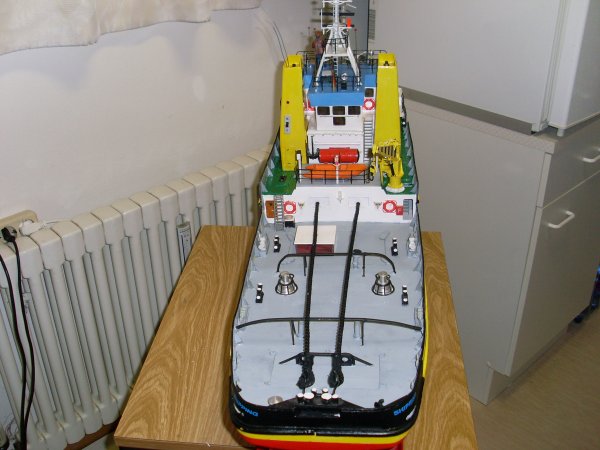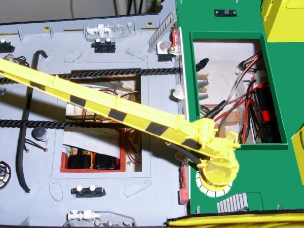 Der Kran an Bord wird mit einem Servo ferngesteuert nach links und rechts