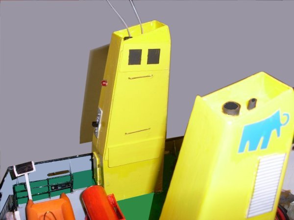 oben. Dem Empfänger habe ich im Schornstein eingebaut.