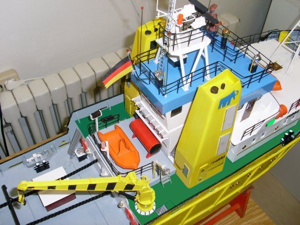 Der Kran an Bord wird mit einem Servo ferngesteuert nach links und rechts