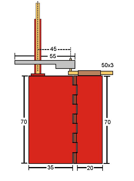 Das linke Bild mit den Maßen für das Becker Ruder, mit einem einfachen